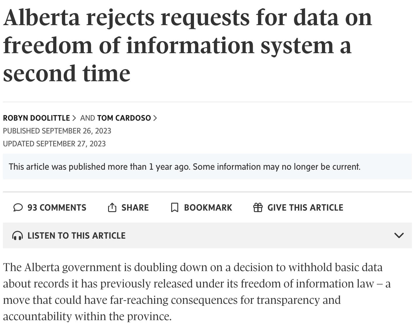at The Globe and Mail (and FOI power user)
