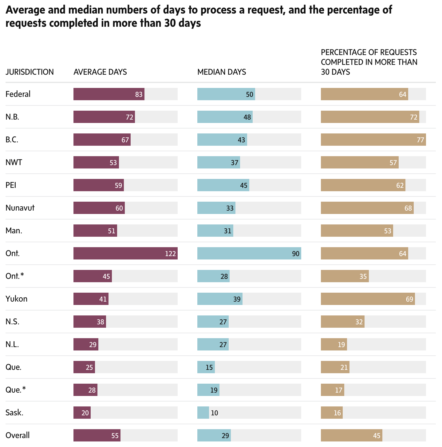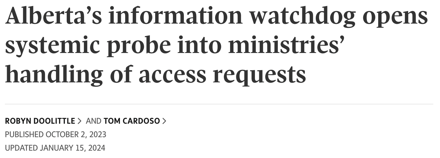 Our database was constructed from hundreds of FOIs, filed to every major public body in the country. Ministries, municipalities, police, hospitals, universities, Crown corporations… the list goes on. And we’re currently filing our next round!