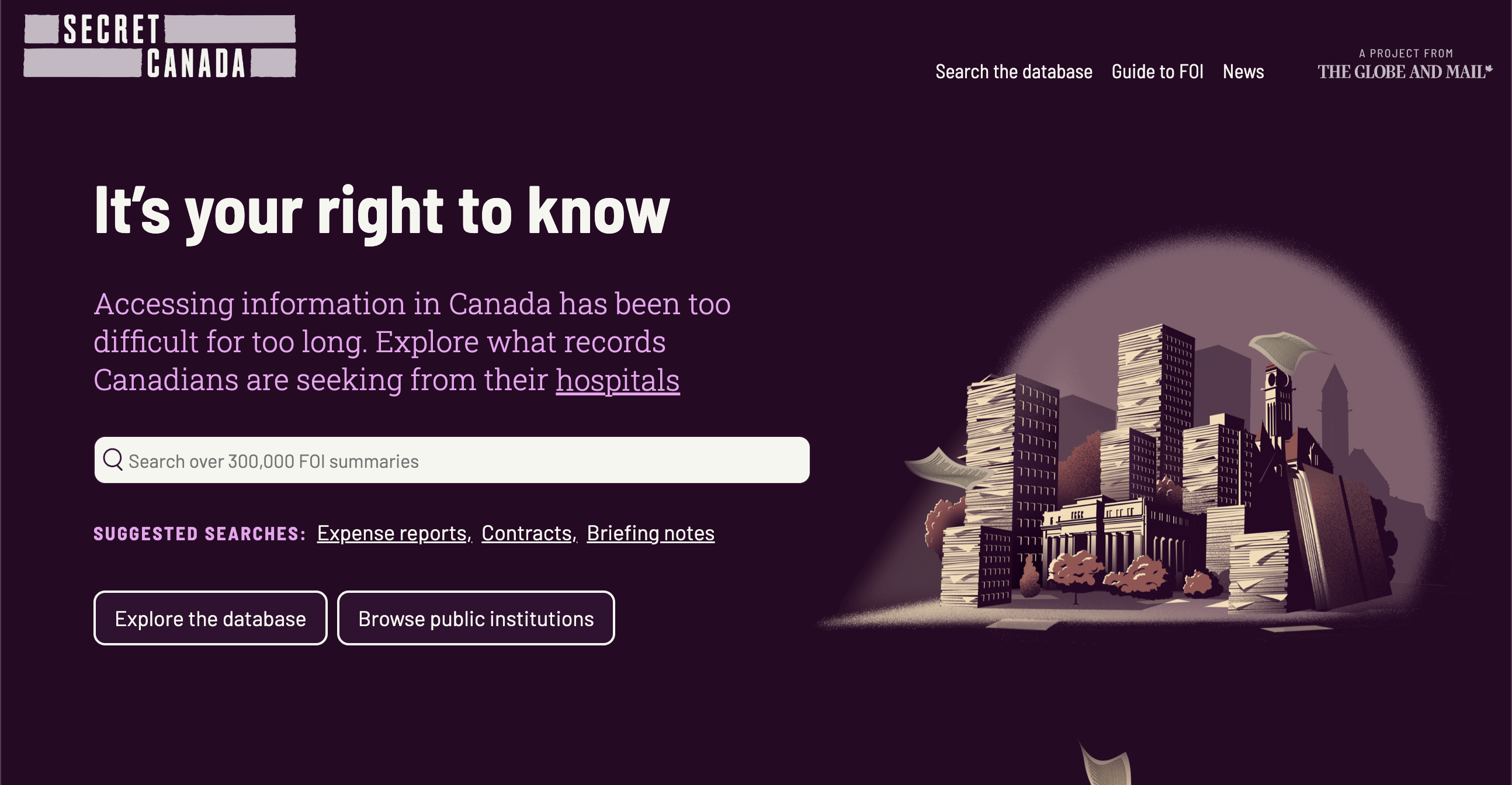 Secret Canada was an exhaustive examination of Canada’s broken FOI systems, and the culmination of 18 months of investigative work. More than 1,000 FOIs, 200+ interviews and 100+ stories, blog posts and newsletters.